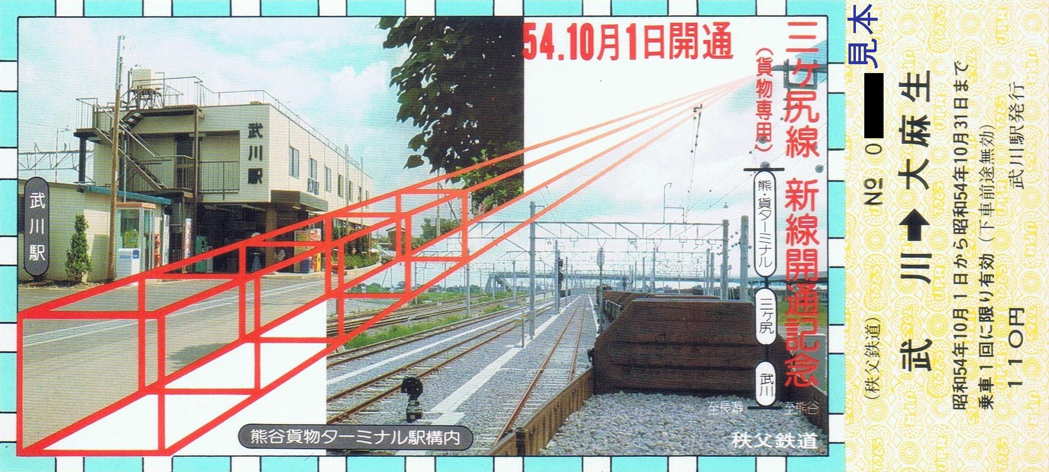 《三ヶ尻線貨物専用新線開通記念乗車券(昭和54年10月1日)》