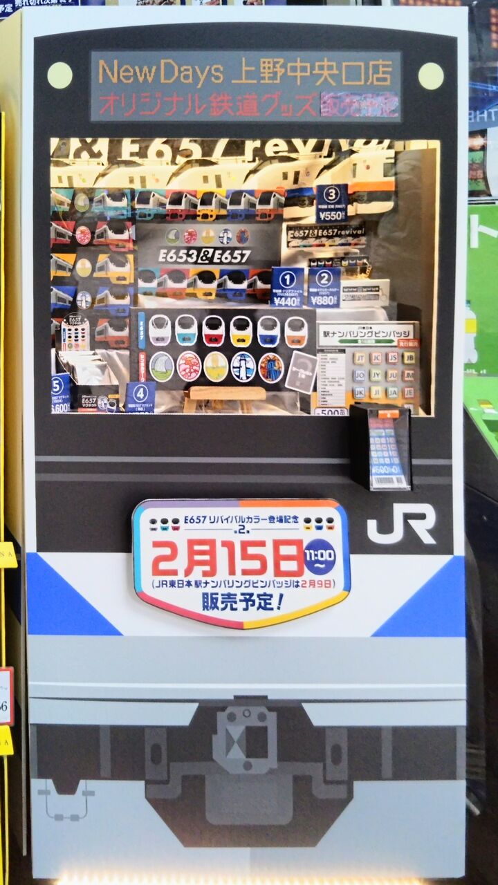 NEWDAYS上野中央口店入口前に展示されているE531系電車型ショーウィンドウで、本商品を含むリバイバルカラー登場記念商品見本が展示されています。――――――――――――――――――――――――――――――――――――――