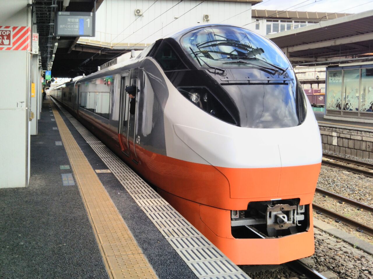 柏駅下りホーム指定席券売機にて購入したときわ65号(E653系電車のリバイバルカラー車両・橙を使用)の特急券。2号車に乗車。
