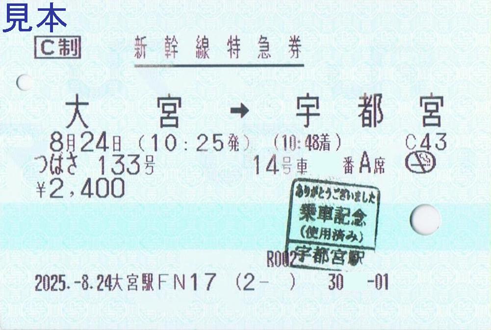 《大宮駅FN17発行 つばさ133号 新幹線特急券(2025(令和7)年8月24日)》