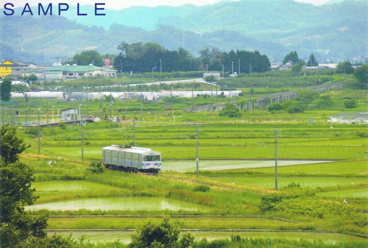 岳南電車吉原駅にて販売されていたポストカードで1枚・税込200円。デザインは7001号車ブルーグリーンカラ―と9000形。