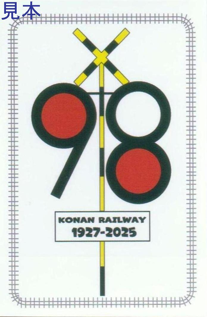 弘南鉄道オンラインショップでのグッズ購入者への特典となる非売品の98周年ロゴステッカーで横型です。《98周年ロゴステッカー(縦型)(2025(令和7)年)》