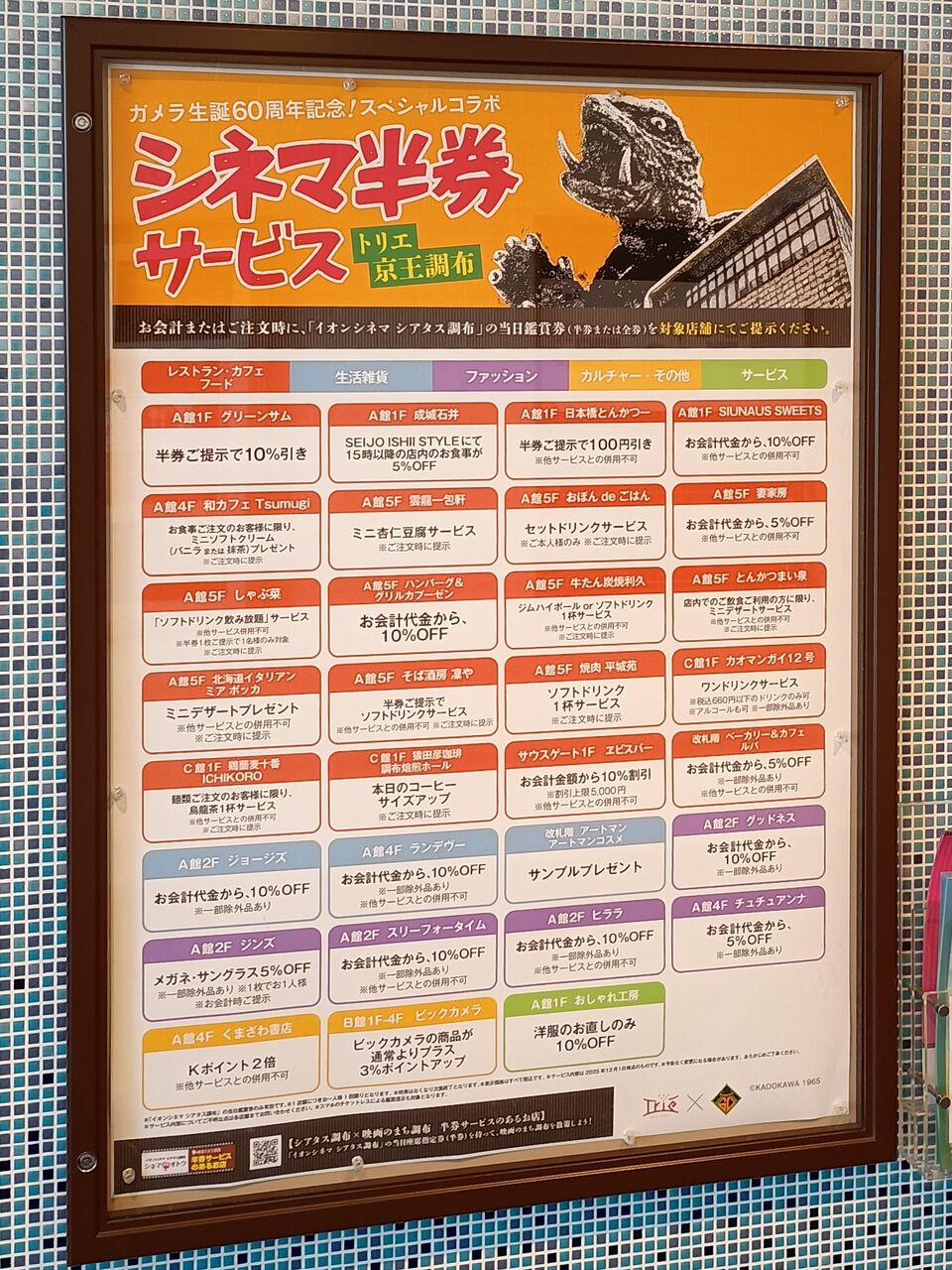 各ラリースポットには昔のガメラシリーズ映画ポスターを掲出。写真左は京王線調布駅中央口改札階のもの。以降はA館内。