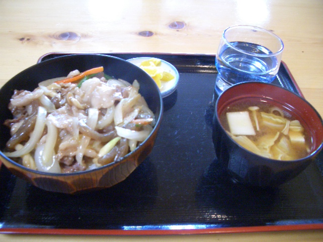 さて、昼飯を食べに一旦バス停あたりまで戻る事にします。ちょうどバス停前に「王滝食堂」があるので、そこで食事にします。メニューをみると麺類から丼、定食等なんでもありますが、王滝名物の猪豚料理もあり(ステーキ、鍋定食、丼)、私は猪豚丼(850円)を食べました。豚肉よりも脂ののりがちょうど良いのでしょうか、まろやかで美味しいです。