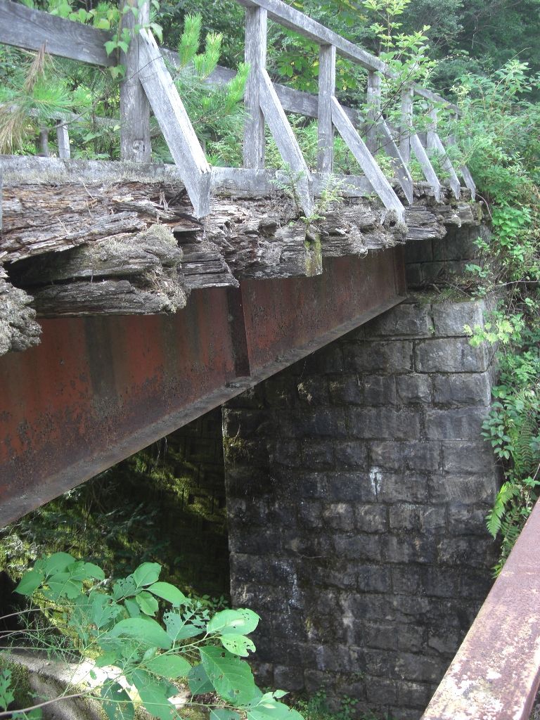 鉄橋の上部です。劣化の度合いが分からないので歩くのは止めておきました。【関連記事】