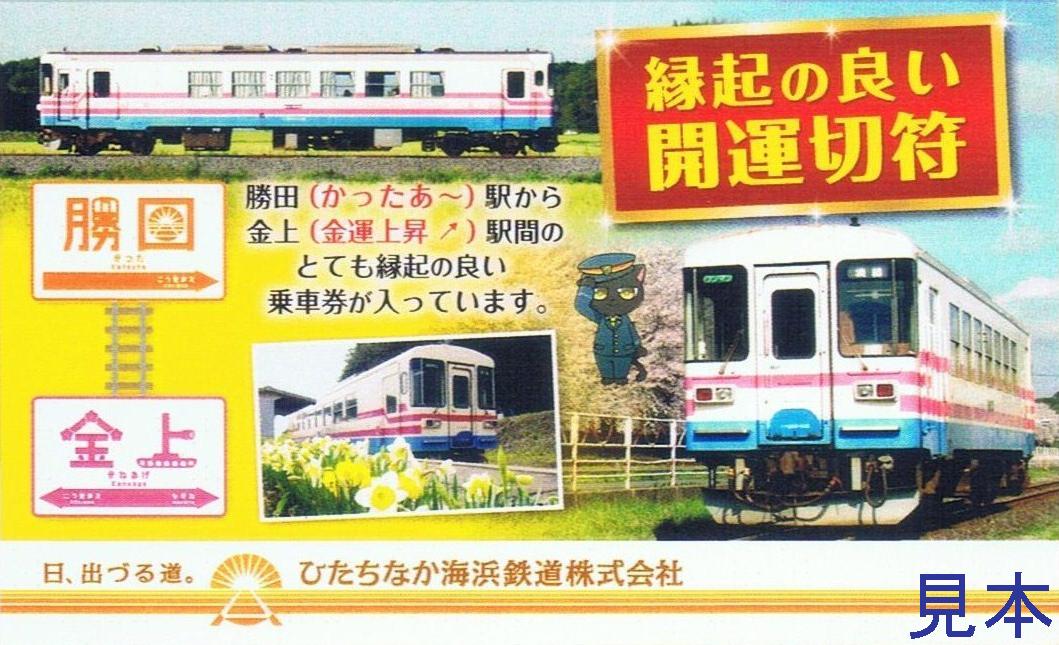 金上駅近くに臨時駐車場を設置し、同駅〜那珂湊駅間を鉄道利用とするパークアンドライドの実証実験用の企画乗車券で、5名まで乗車可能。1枚500円でミキ300-103デザイン。――――――――――――――――――――――――――――――――――――――